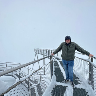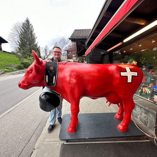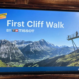 One final attraction in Grindelwald before we left town was just across the street from our hotel and up a 25-minute cable car ride. Grindelwald First is a bit of a summer destination in that there are many activities which are closed with snow on the ground. The draw for us was the cliff walk - a 300-meter metal walkway suspended from the mountainside. While it is open in the winter, unfortunately, it was closed as there had been too much snow and they hadn’t been able to keep up with clearing it. Fortunately, there was one section that was still open that we were able to walk out on. We took a picture of the poster they had just for a comparison, the fog was typical of our time in Grindelwald but perhaps that is to be expected with an April visit. Back down the mountain to retrieve our bags from the hotel and have the shuttle take us back to the train station.